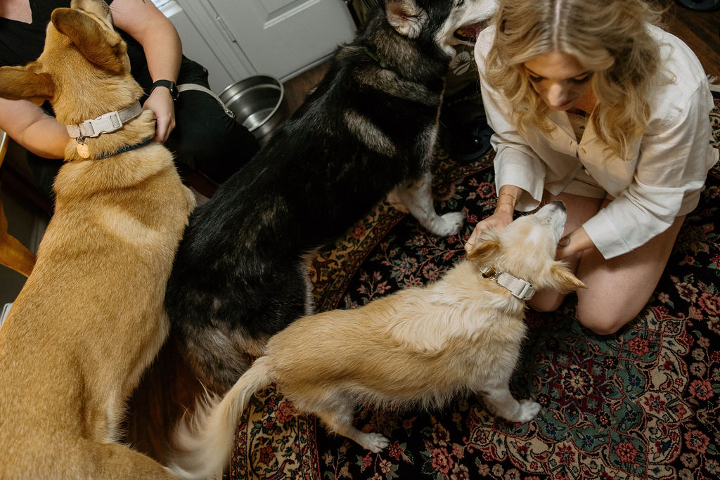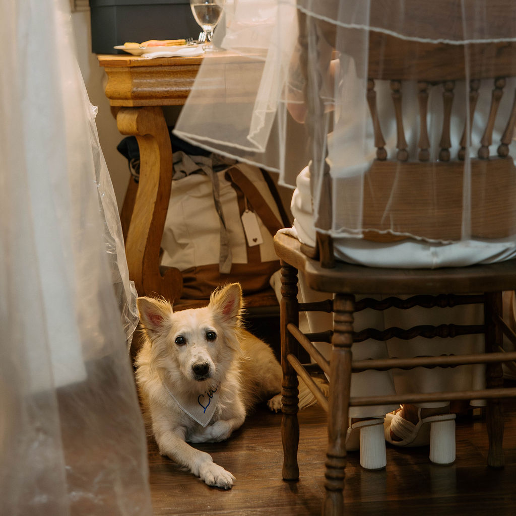 Every piece of Nikki and Laurie was woven throughout their intimate wedding day at Millcreek Inn and it was certainly a memorable one! It was very important to have their dogs by their side on this special day, so they were sure to find a dog-friendly wedding venue. Their dogs hung out with them while they got ready and then walked down the aisle as part of the bridal party!